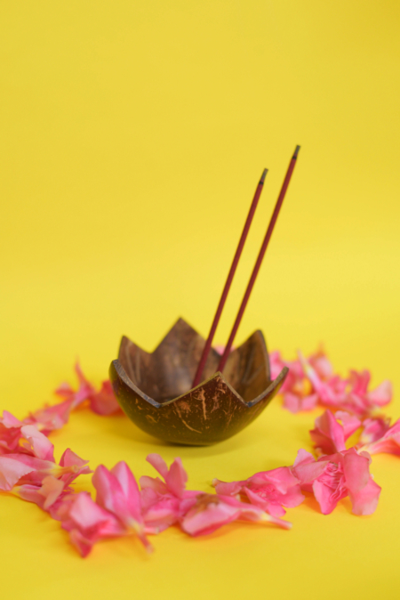 Coconut Holder to place incense sticks and cones and ashes will be collected in the bowl.