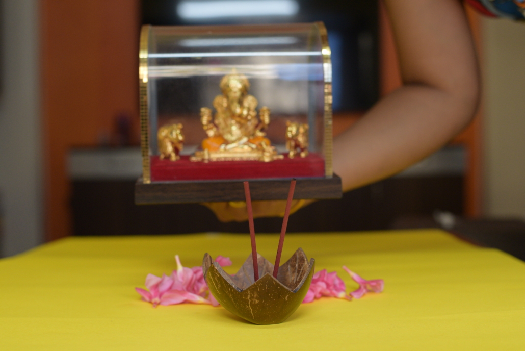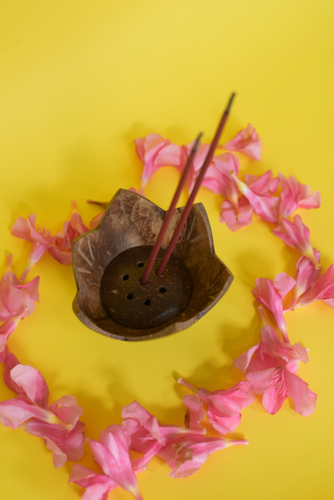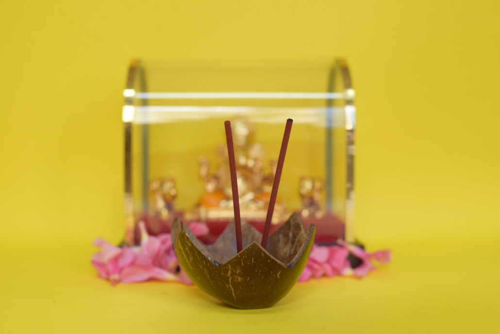 Coconut Holder to place incense sticks and cones and ashes will be collected in the bowl.